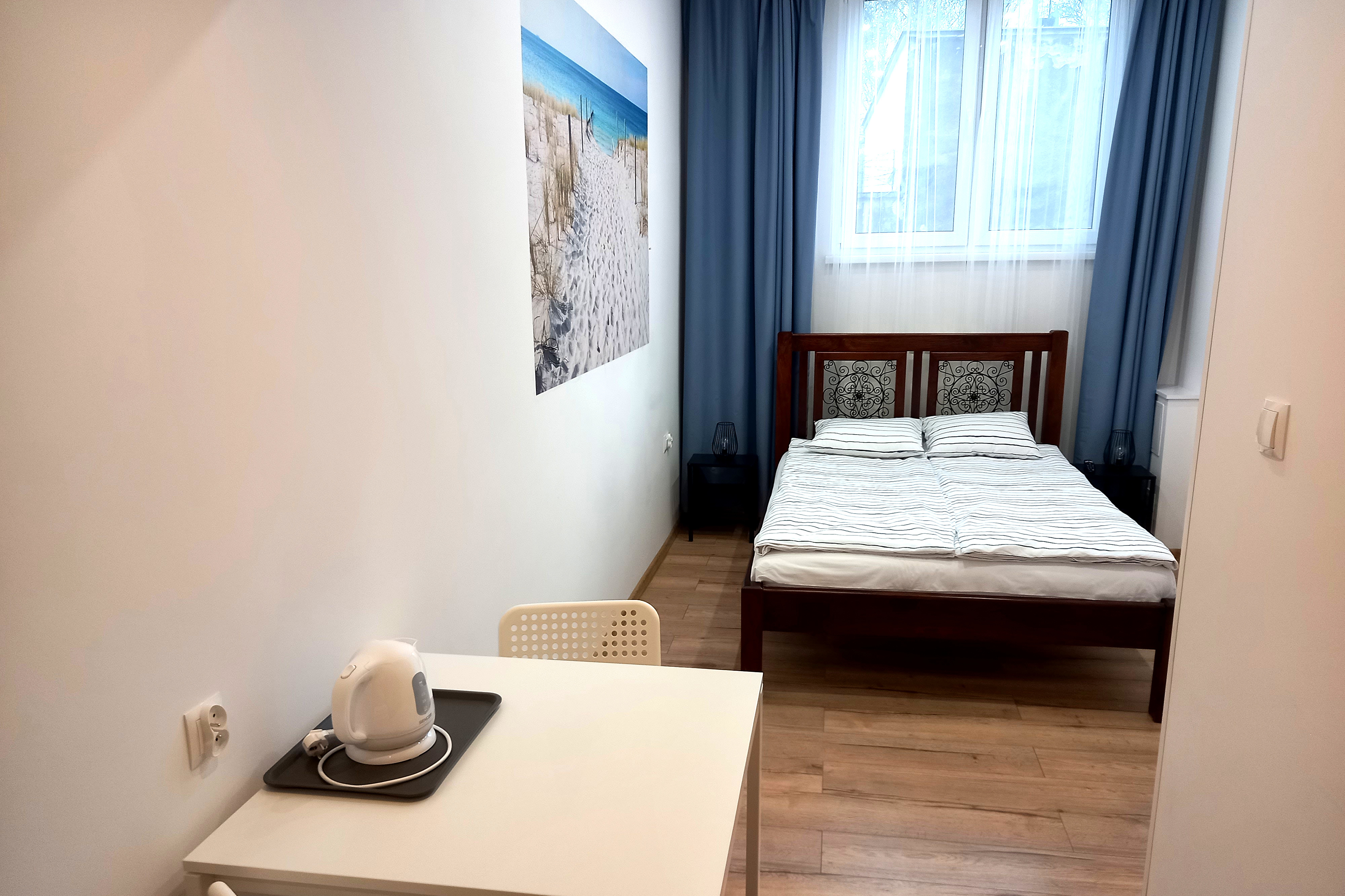Pokój idealny na komfortowy pobyt nad morzem dla jednej lub dwóch osób. W pokoju (o powierzchni ok. 12m2) znajduje się łóżko podwójne o szerokości 140 cm, łazienka z prysznicem i suszarką, lodówka, TV, czajnik, ręczniki.